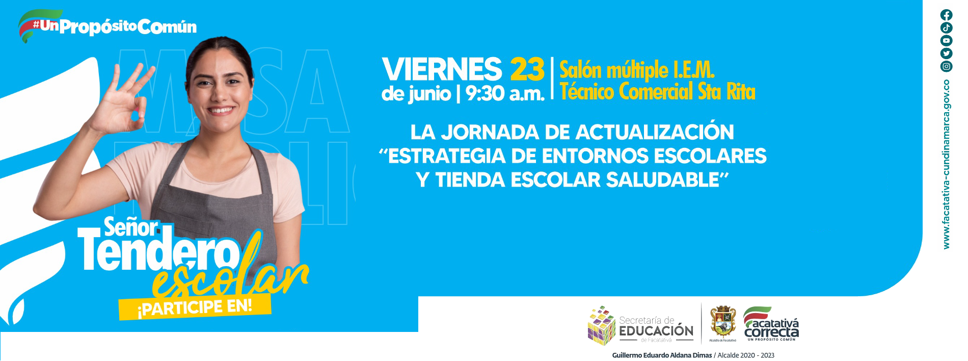 La Administración Municipal, a través de la Secretaría de Educación invita a tenderos escolares de nuestro municipio a la jornada de actualización “Estrategia de entornos escolares y tienda escolar saludable”.