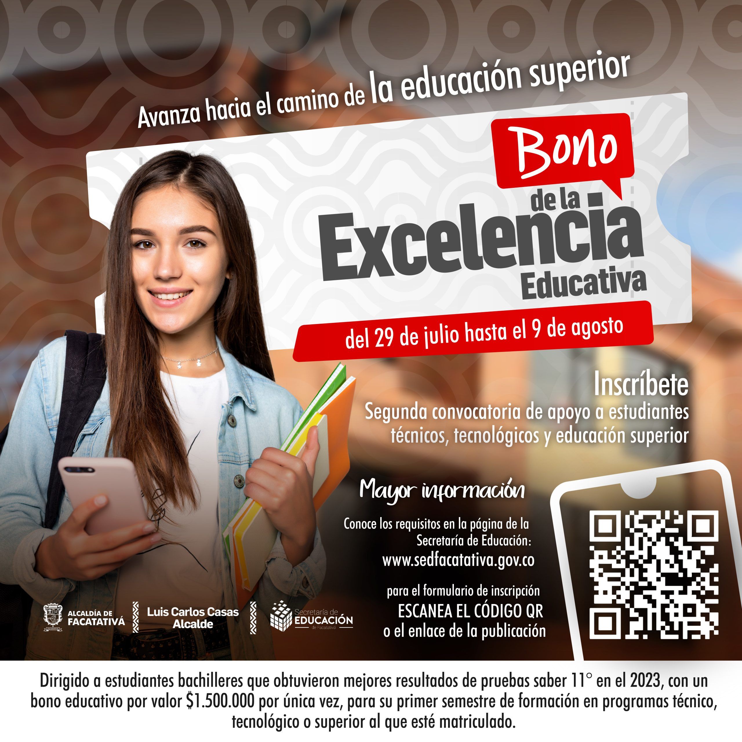 La Administración Municipal a través del Fondo para la Educación Superior del Municipio de Facatativá, invita a la comunidad a participar de la segunda convocatoria 2024 para acceder a los beneficios o apoyos dirigidos a bachilleres y estudiantes de instituciones técnicas, tecnológicas y superior ubicadas en la ciudad de Bogotá, Cundinamarca y el Sena de Mosquera.